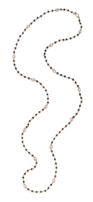 An 18 Karat Bicolor Gold, Black Diamond and Diamond Longchain Necklace, 8.25 dwts.