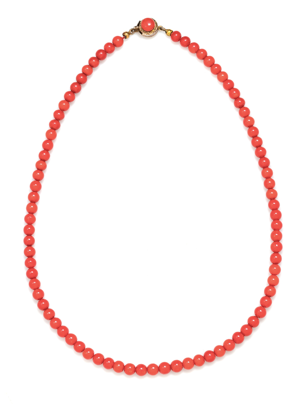 A Coral Bead Necklace, 17.70 dwts.
