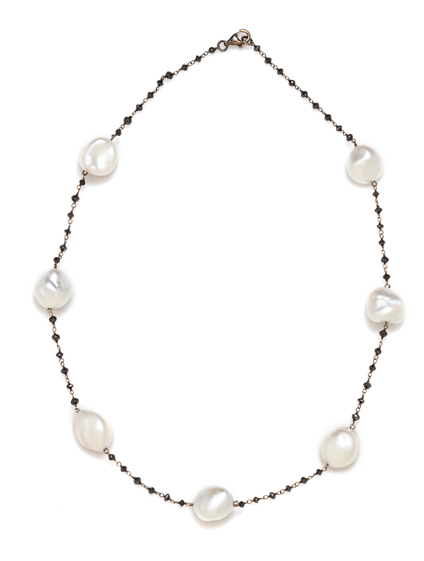 An 18 Karat Blackened Gold, Cultured Baroque Pearl and Black Diamond Necklace, 10.20 dwts.