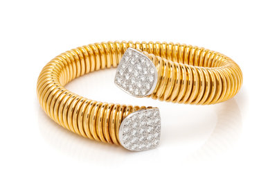 An 18 Karat Bicolor Gold and Diamond Tubogas Cuff Bracelet, Micheletto, 41.50 dwts.