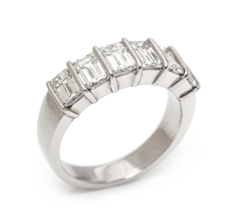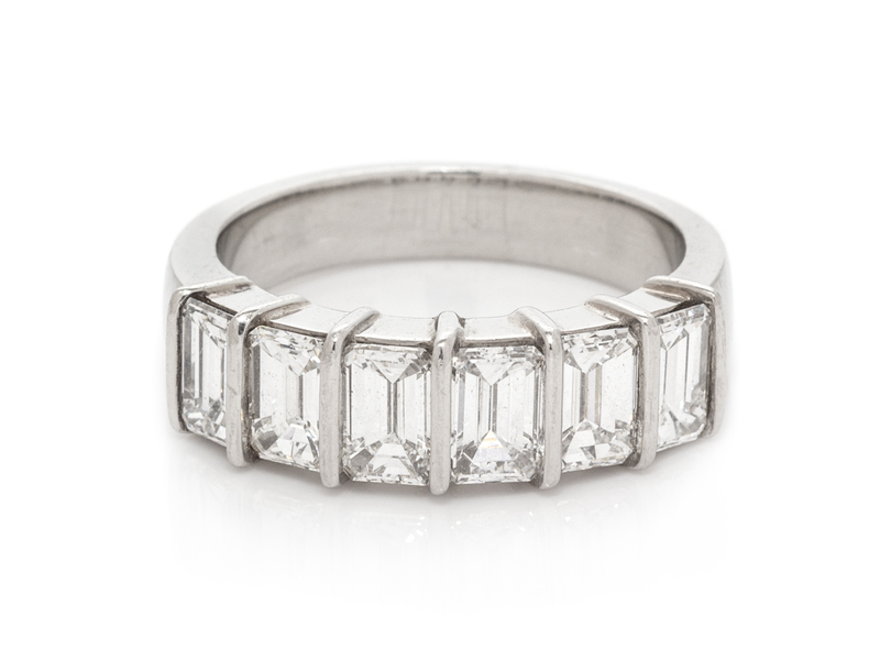 containing six octagonal step cut diamonds weighing approximately 2.55 carats total.