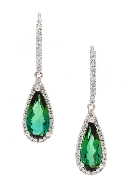 A Pair of 18 Karat White Gold, Green Tourmaline and Diamond Earrings, 3.00 dwts.