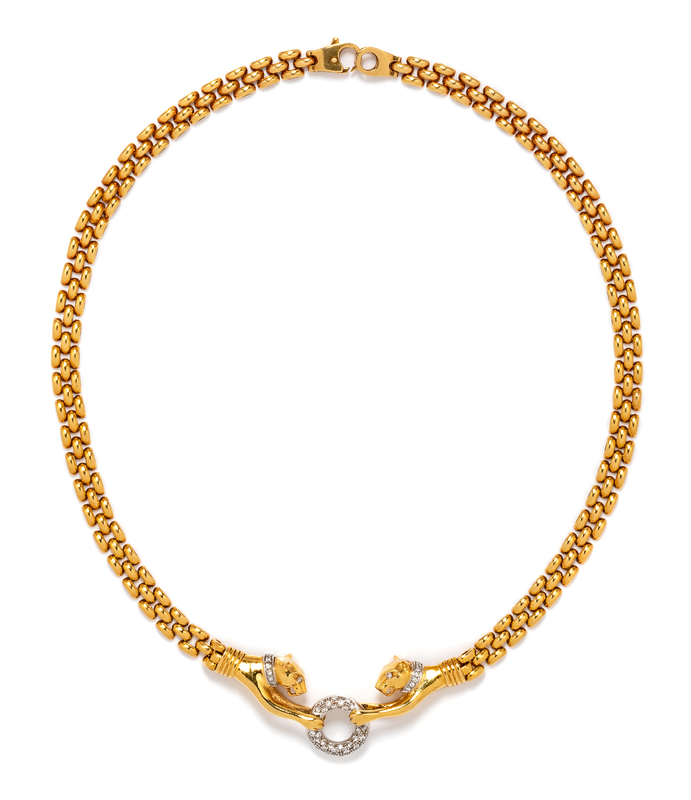 An 18 Karat Bicolor Gold and Diamond Panther Motif Necklace, 29.85 dwts.