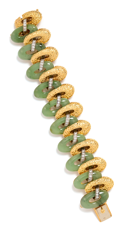 An 18 Karat Bicolor Gold, Jade and Diamond Bracelet, Gianfranco Frattini, 116.25 dwts.