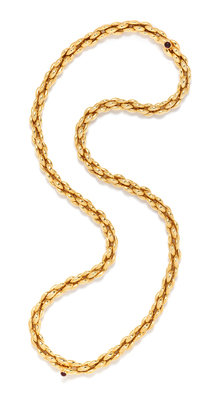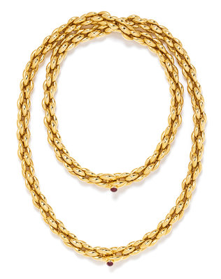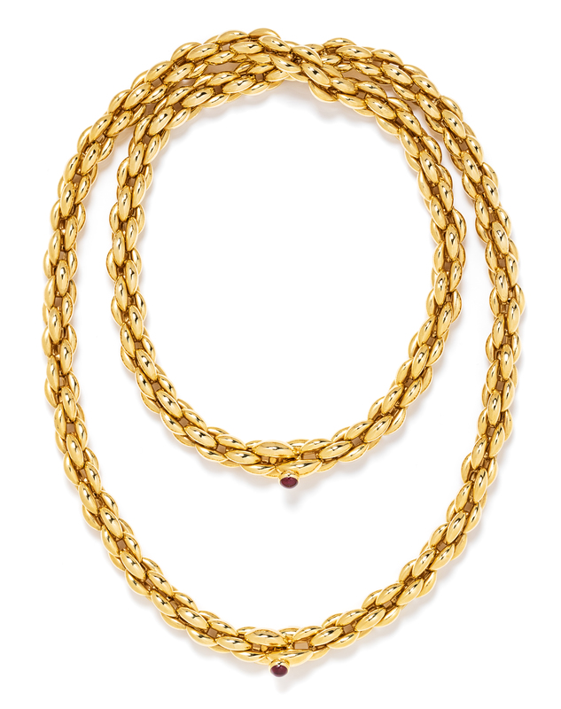 An 18 Karat Yellow Gold and Garnet Convertible Longchain Necklace, Neiman Marcus, 128.70 dwts.