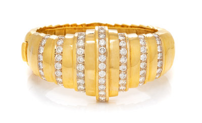 A Yellow Gold and Diamond Bangle Bracelet, 52.00 dwts.