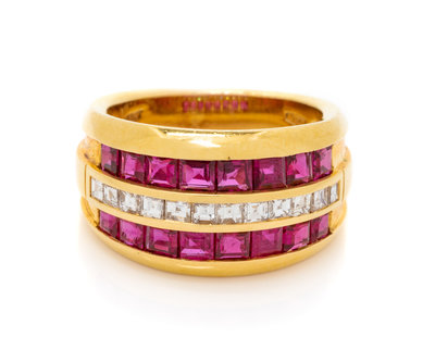 An 18 Karat Yellow Gold, Ruby and Diamond Ring, Italian, 8.00 dwts.