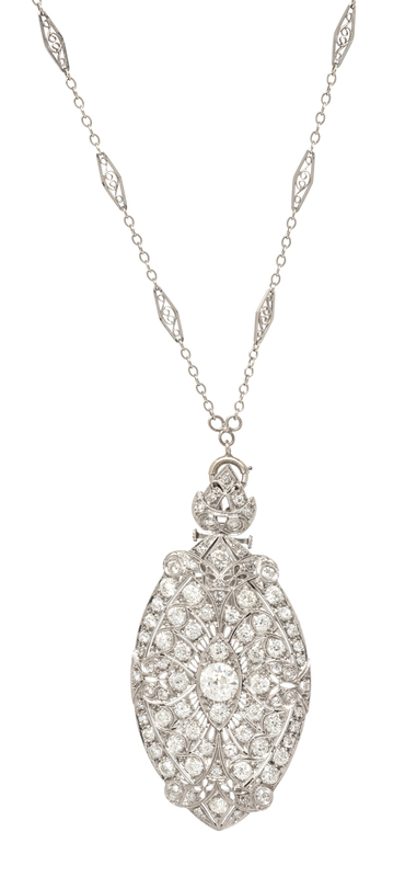 An Art Deco Platinum and Diamond Convertible Pendant/Brooch, 15.90 dwts.