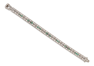An Art Deco Platinum, Diamond, Emerald and Onyx Bracelet, 17.88 dwts.