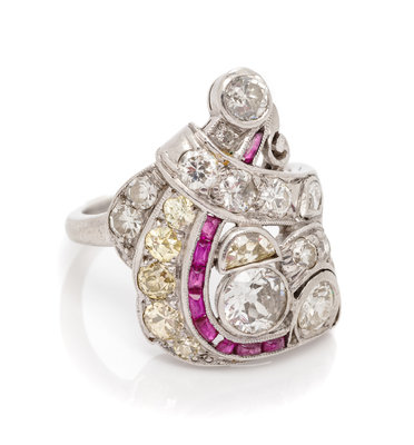 An Antique Platinum, Diamond and Ruby Ring, 3.00 dwts.