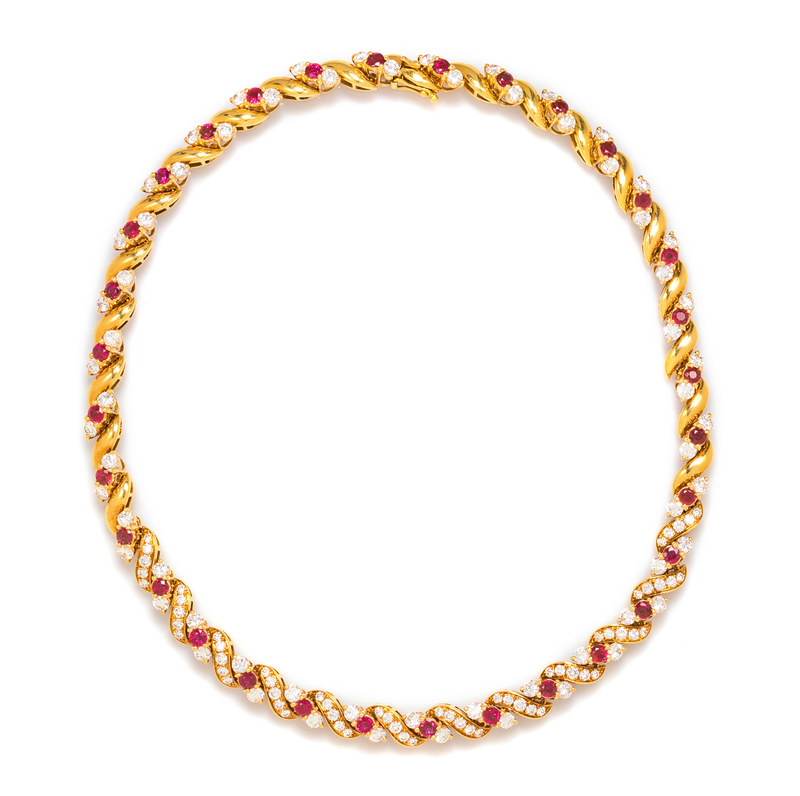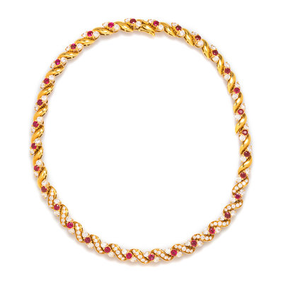 An 18 Karat Yellow Gold, Ruby and Diamond Necklace, Chaumet, Paris, 34.10 dwts.