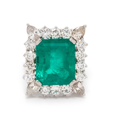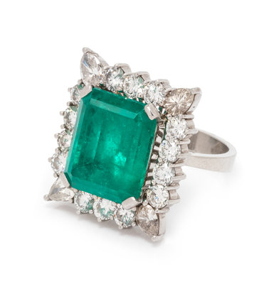 A Platinum, Emerald and Diamond Ring, 13.45 dwts.