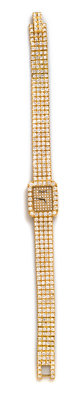 16.50 x 13.00 mm case dimensions, dial containing 63 round brilliant cut diamonds weighing approximately 0.30 carat total, crystal signed PIAGET, pitched dauphine hands, case back affixed with four screws, quartz movement, flexible bracelet containing 278 round brilliant cut diamonds weighing approximately 8.30 carats total, fold over clasp.Case back stamp: 15241 C626 435592.Clasp stamp: PIAGET 750.