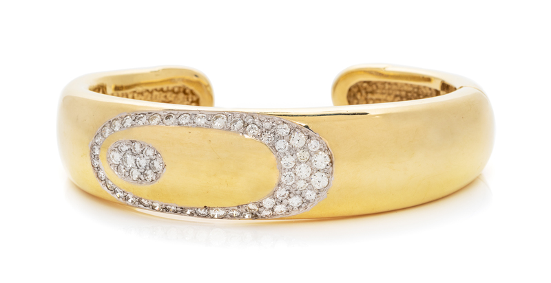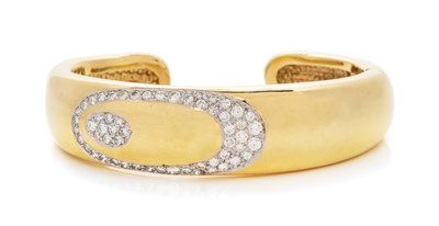 A 14 Karat Yellow Gold and Diamond Cuff Bracelet, 27.00 dwts.