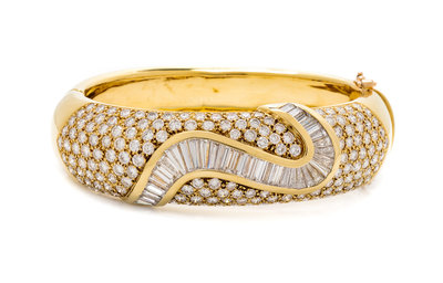 An 18 Karat Yellow Gold and Diamond Bangle Bracelet, 62.00 dwts.