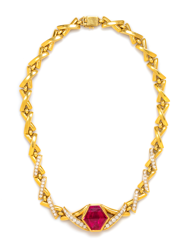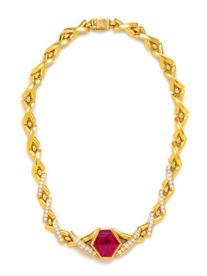An 18 Karat Yellow Gold, Rubellite and Diamond Necklace, Susan Berman, 42.00 dwts.