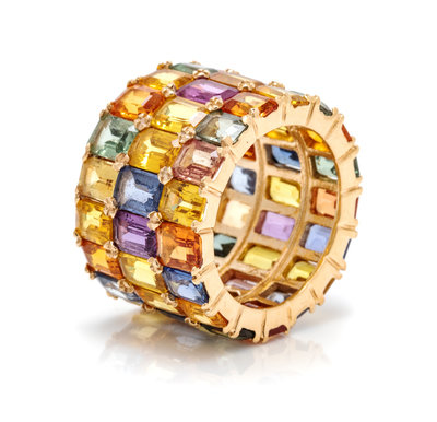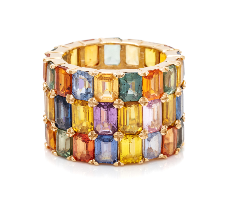 A 14 Karat Yellow Gold and Multicolor Sapphire Ring, 9.30 dwts.