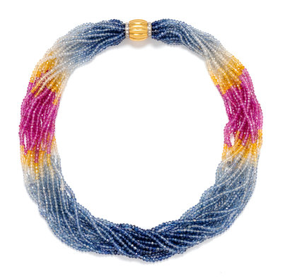 An 18 Karat Yellow Gold, Diamond and Multicolor Sapphire Bead Torsade Necklace, Italian, 66.00 dwts.