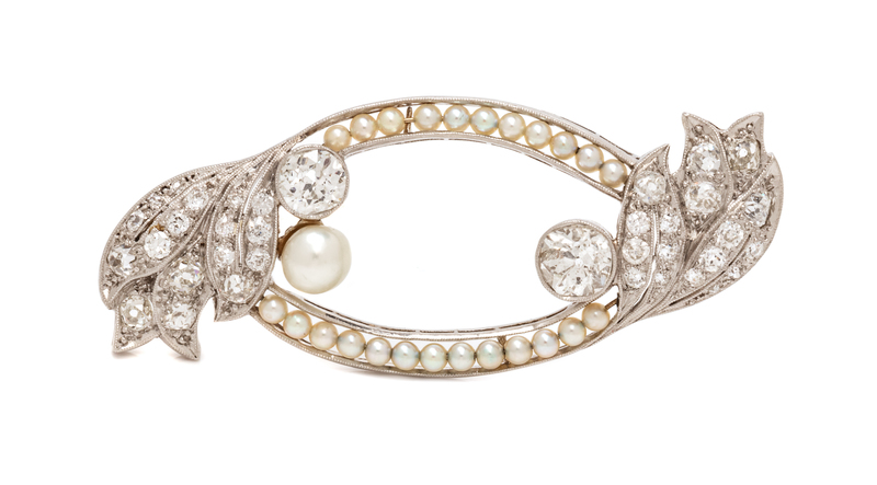 containing two old mine cut diamonds weighing approximately 1.50 carats total, one pearl (origin not tested) measuring approximately 5.25 mm in diameter, 34 old mine and old European cut diamonds weighing approximately 2.00 carats total and 24 seed pearls.