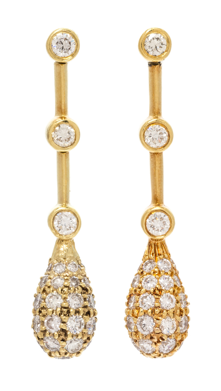 A Pair of 18 Karat Yellow Gold and Diamond Earrings, 4.20 dwts.