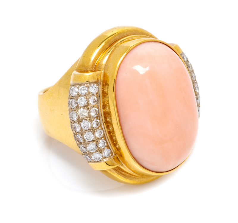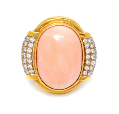 An 18 Karat Yellow Gold, Angel Skin Coral and Diamond Ring, Susan Berman, 18.00 dwts.