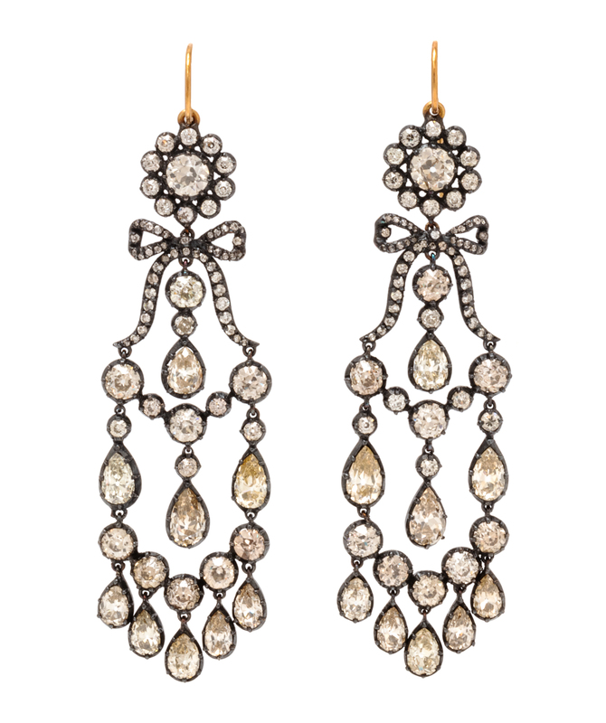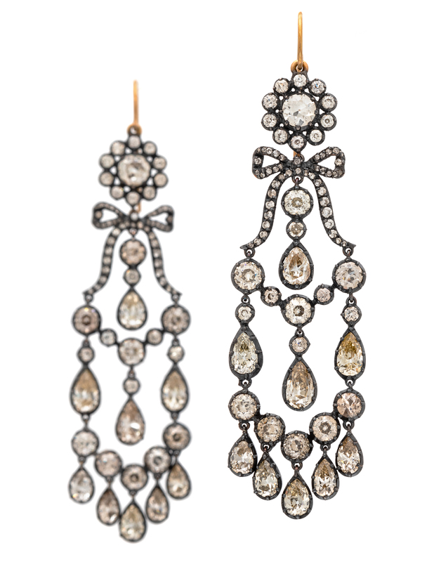 containing approximately 138 old European and old mine cut diamonds weighing approximately 8.00 carats total and 18 pear shape diamonds weighing approximately 7.00 carats total.
