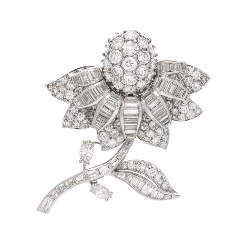 A Platinum and Diamond Flower Brooch, 16.90 dwts.