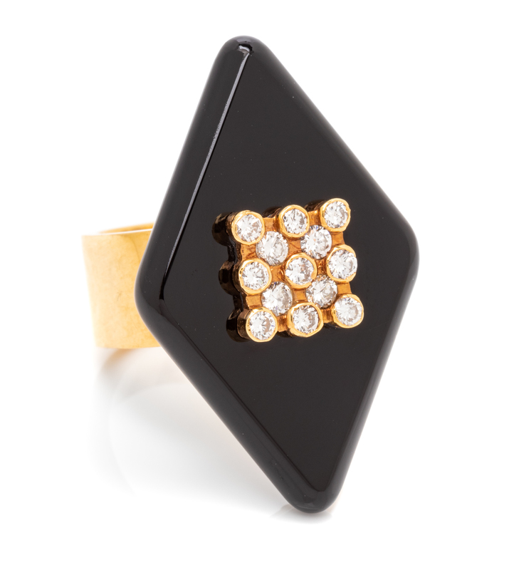 An 18 Karat Yellow Gold, Onyx and Diamond Ring, Joseph Weisager, Circa 1972, 12.00 dwts.