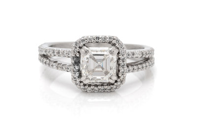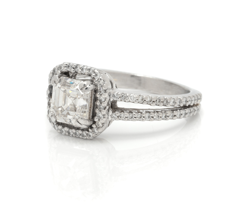containing one square step cut diamond weighing approximately 1.30 carats and 82 round brilliant cut diamonds weighing approximately 0.30 carat total.Stamp: PT950.