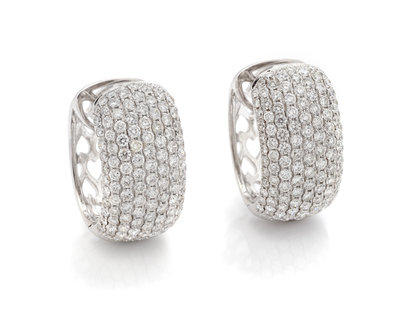 A Pair of 18 Karat White Gold and Diamond Hoop Earrings, 8.20 dwts.