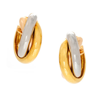 A Pair of 18 Karat Tricolor Gold 'Trinity' Hoop Earrings, Cartier, 10.10 dwts.