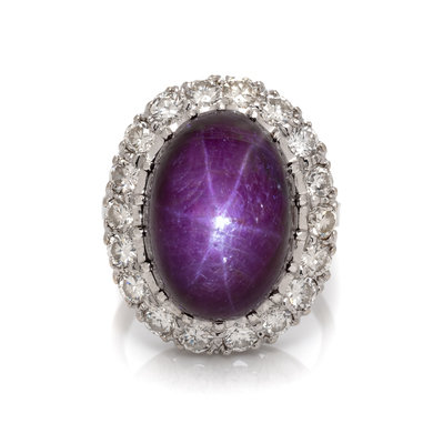 A 14 Karat White Gold, Star Ruby and Diamond Ring, 7.30 dwts.
