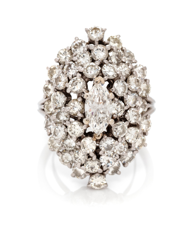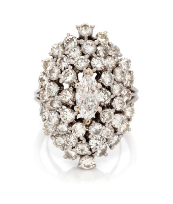 containing one marquise cut diamond weighing approximately 0.80 carat and 48 round brilliant cut diamonds weighing approximately 3.50 carats total.Stamp: (partially obscured) 069.