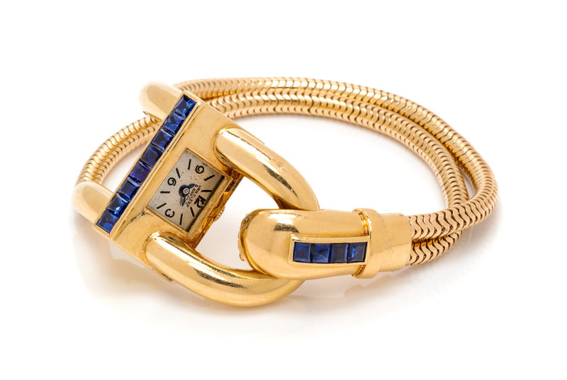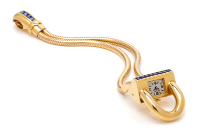 A Retro 18 Karat Yellow Gold and Sapphire 'Cadenas' Wristwatch, Van Cleef & Arpels, New York, 40.60 dwts.