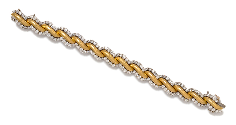 A Yellow Gold, Platinum and Diamond Bracelet, 42.90 dwts.