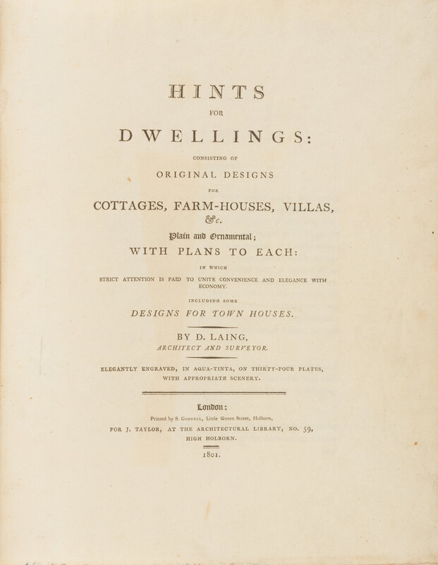 [Architecture] Laing, David. Hints for Dwellings, Consisting of Original Designs for Cottages, Farm-Houses, Villas, Etc.