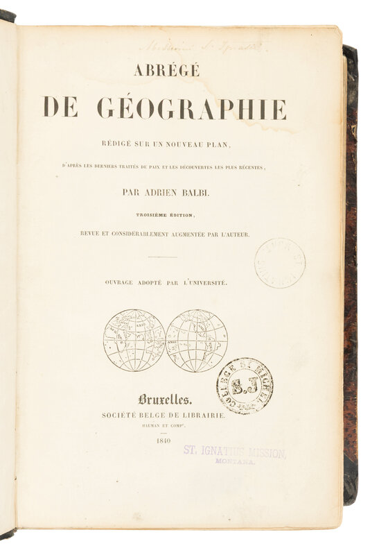 From the Jesuit library of St. Ignatius Mission, Montana, possibly De Smet's copy.