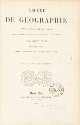 [Americana] Balbi, Adrien. Abrege de geographie, redige sur un noveau plan, d'apres les derniers traites de paix et les decouvertes les plus recents