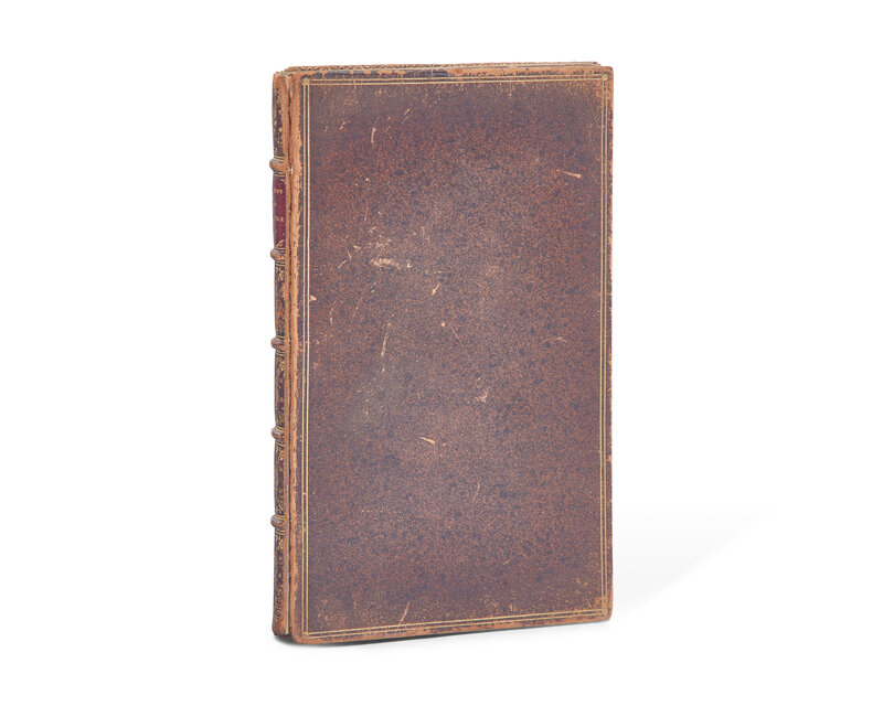 London: Published by Darton and Harvey, June 14, 1798. First edition. 12mo. Illustrated with hand-colored engraved frontispiece, hand-colored vignette title-page, eight full-page hand-colored engravings, 16 hand-colored in-text engravings, and two hand-colored engraved tail-pieces. Full speckled brown calf, red morocco spine label, decorated in gilt, front board detached, rubbing to extremities and joints, spine dry and chipped, boards scratched and rubbed; all edges gilt; marbled endpapers. Darton G226