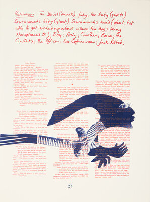 (Guildford, Surrey): Circle Press, 1986. First and limited edition, #28/80 numbered copies signed by Roy Fisher only. Folio. Illustrated with color screen-prints, including 10 with moveable parts (many captioned at bottom in pencil), plus one screen-print signed in pencil by Ronald King; photocopies of letters between Fisher and King mounted with paperclip at front, as issued. Gatherings loose as issued in printed paper chemise, and in original red cloth chemise and slip case.