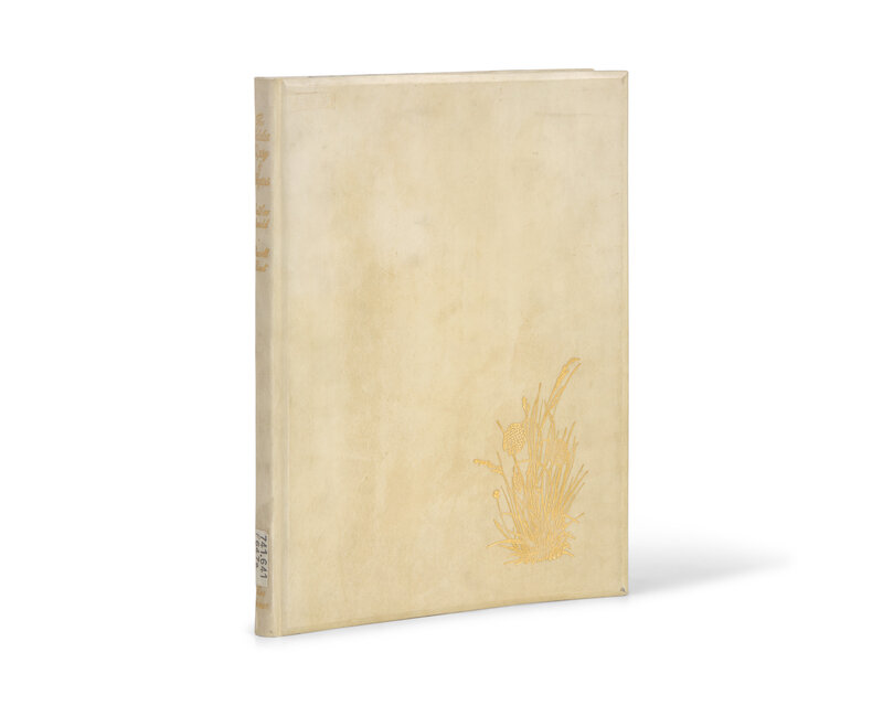 London: Philip Lee Warner, 1910. First and limited edition, #18/100 numbered copies printed on Japanese vellum, signed by the artist W. Russell Flint. 4to. (68) pp. Illustrated with 10 tipped-in color plates by Flint. Full vellum, stamped in gilt, boards very lightly bowed and lightly soiled, library label at foot of spine; top edge gilt, other edges untrimmed; marbled endpapers; library book-plate on front paste-down; library ink stamp on verso of rear endpaper; large blank label on rear paste-down.