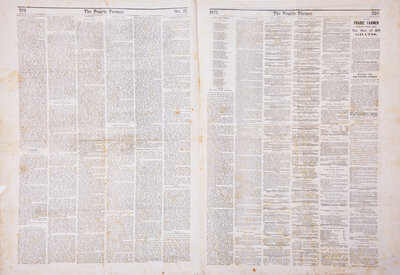 Chicago, Saturday, October 21, 1871. Vol. 42, No. 42. Printed newspaper. Bifolium, 22 1/4 x 16 1/4 in. (565 x 413 mm). "Jno Francis" and "Harriet Francis owner" penciled above masthead, possibly John (1843-1913) and Harriet Francis (1845-?), farmers of New Lenox, Illinois. Wear along edges; foxing; creasing from when folded.