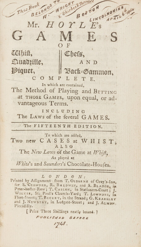 Mr. Hoyle's Games of Whist, Chess, Quadrille, Piquet, and Back-Gammon.