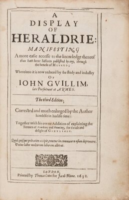 Honor Redivivus, or An Analysis of Honor and Armory. London: For Henry Heringman, 1660. Later half calf. Wing C659.