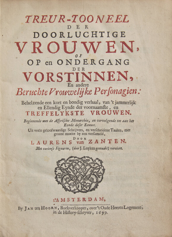 [History] Zanten, Laurens van. Treur-Tooneel der Doorluchtige Vrouwen, of op en Ondergang der Vorstinnen...