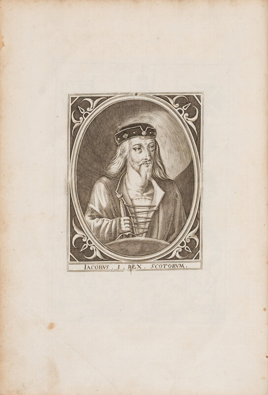 Edinburgh: David Lindsay, 1681. Later edition. Folio (356 x 241 mm). Engraved title page with additional full page engravings of the Stuart monarchs. Contemporary full calf with modern spine rebacked in 7 compartments with 6 raised bands, lightly worn; some penciled notations at margins, very minor soiling, small institutional stamp to title page. ESTC R15415; Wing S1265.
