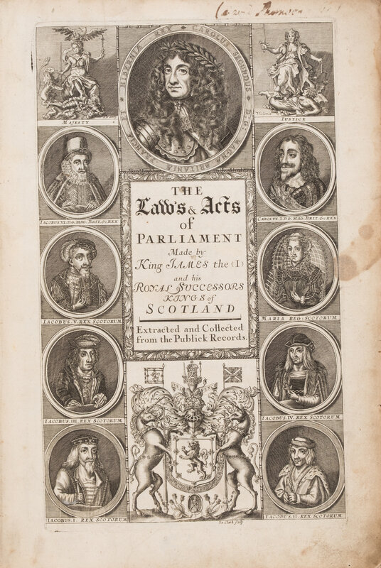 [Law] Murray, Sir Thomas (ed.). The Laws and Acts of Parliament Made by King James the I and His Successors Kings of Scotland, Extracted and Collected from the Publick Records