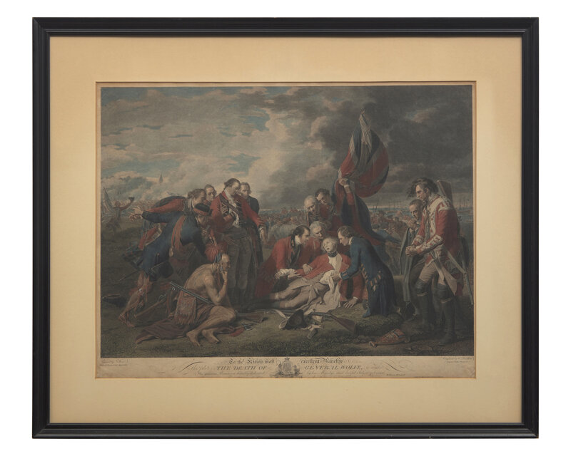 London: Messrs. Woollett, Boydell & Ryland, January 1, 1776. Hand-colored engraving. Trimmed to plate mark; mat burn. 18 5/8 x 23 7/8 in. (473 x 606 mm). In mat and in frame, 26 x 31 in. (660 x 787 mm).