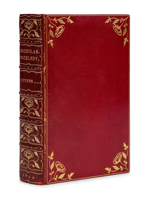 London: Chapman and Hall, 1839. First edition, bound from original parts, mixed issue. 8vo. Engraved portrait frontispiece and 39 engraved plates by Hablot Knight Browne ( "Phiz"). (Some toning and offsetting to plates.) Early 20th century red morocco gilt, spine in 6 compartments with 5 raised bands, gilt-lettering in 2, others gilt with fleuron devices, top edge gilt, others uncut, gilt stamp-signed by Wood; part XII wrapper bound in, light rubbing to joints, spine lightly darkened; slipcase. Gimbel A41; Hatton & Cleaver pp.131-160.