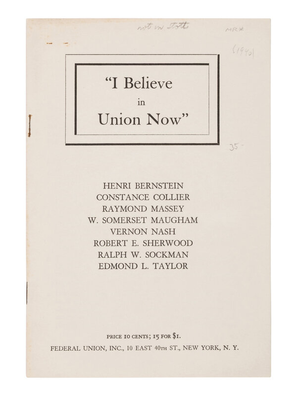 The Windmill. London: William Heinemann, 1923; My Favorite Story. New York: International Magazine Company, 1928; Favorite Stories by Famous Writers. New York: International Magazine Company, 1932; The Complete Short Stories. London: William Heinemann, 1951. 3 volumes; I Believe in Union Now. New York: Federal Union, 1940. Not in Stott; The Writer's Point of View. London: Cambridge University Press for the National Book League, 1951; The World Over. Stories of Manifold Places and People. Garden City, NY: Doubleday & Company, 1952; Selected Prefaces and Introductions. London: Heinemann, 1963. Association copy, with an ownership signature of William H. Henry Jr. (author of "A French Bibliography of W. Somerset Maugham"); And many others, including propaganda contributions in Redbook Magazine, short stories in Ellery Queen's Mystery Magazine, several Avon publications, Colliers, Convoy, etc.